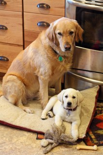 Micron, our change of career and former CCI puppy, was rather unsettled to find he is once again in the position of shared attention. The first couple of days, Micron would agree to be in the same room with the little usurper, but he kept his back to all of us. Dog language for being pretty peeved about our poor decision making skills.