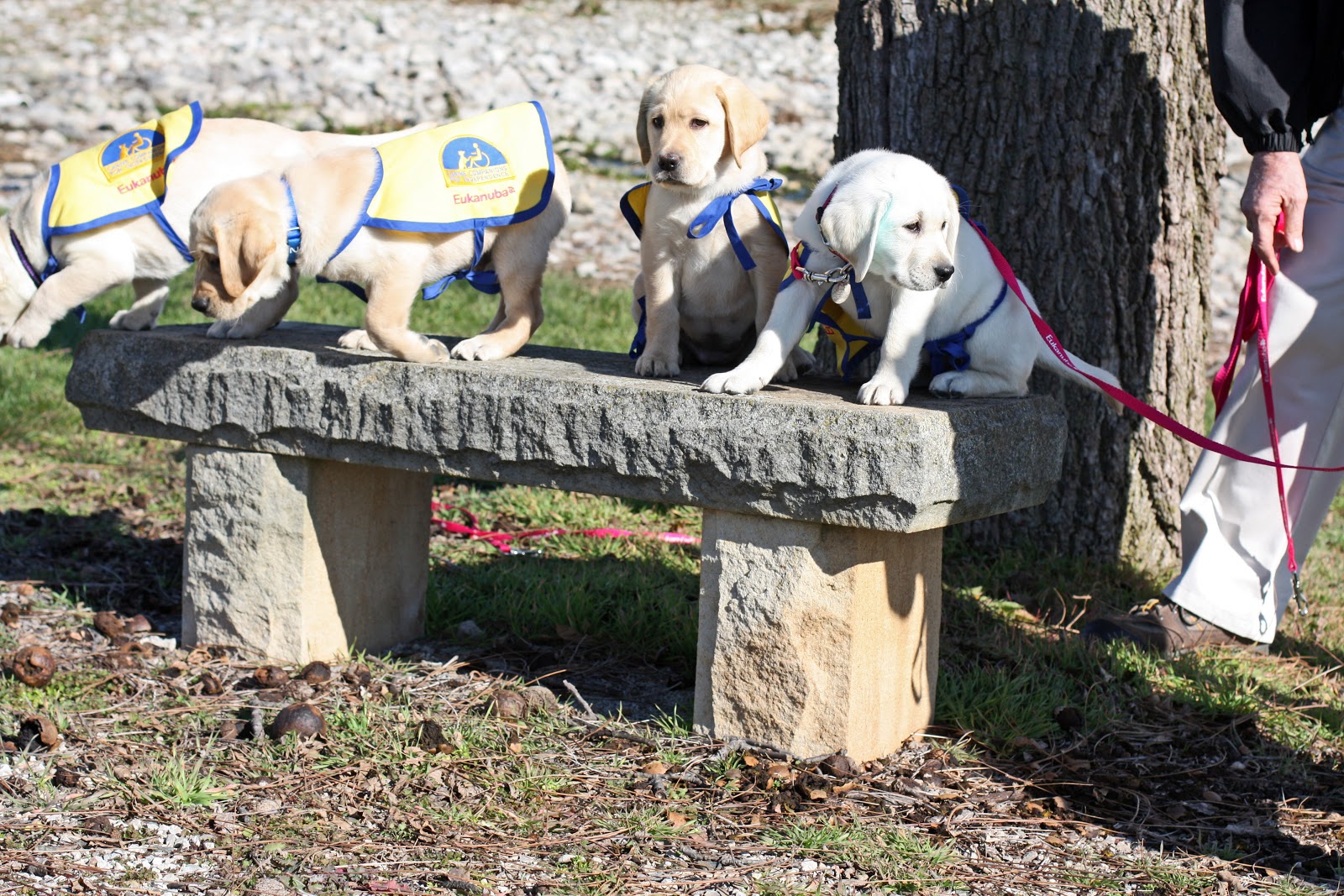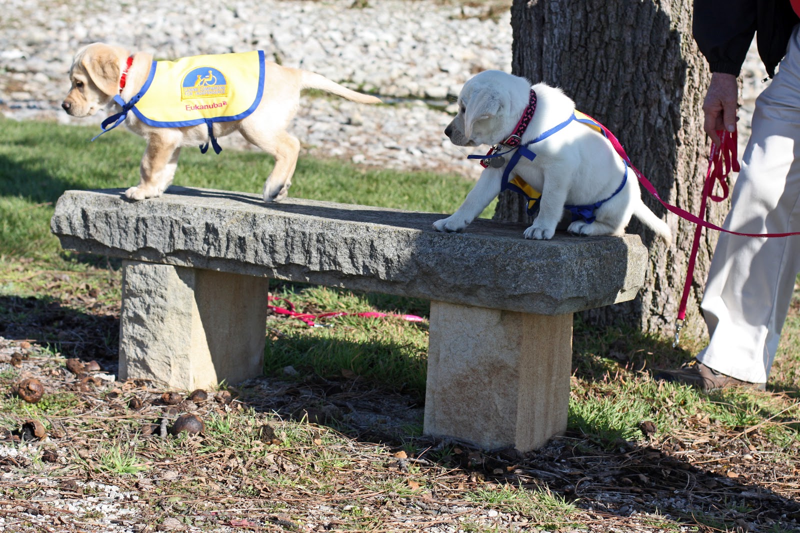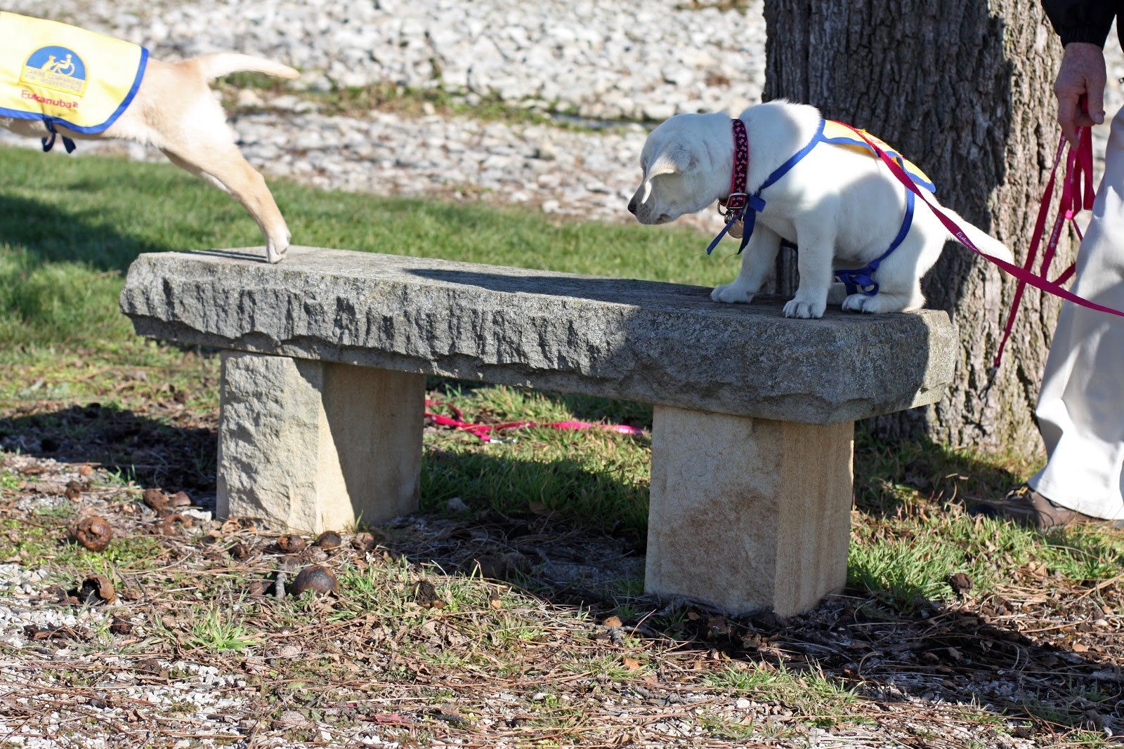 And not content to jump step off the bench like the others, Emma attempts a full over-achiever style leap. Meanwhile, Euka is left to man the fort, the only thing holding her back is a pink leash and the knowledge that she now owns title to this piece of prime real estate.