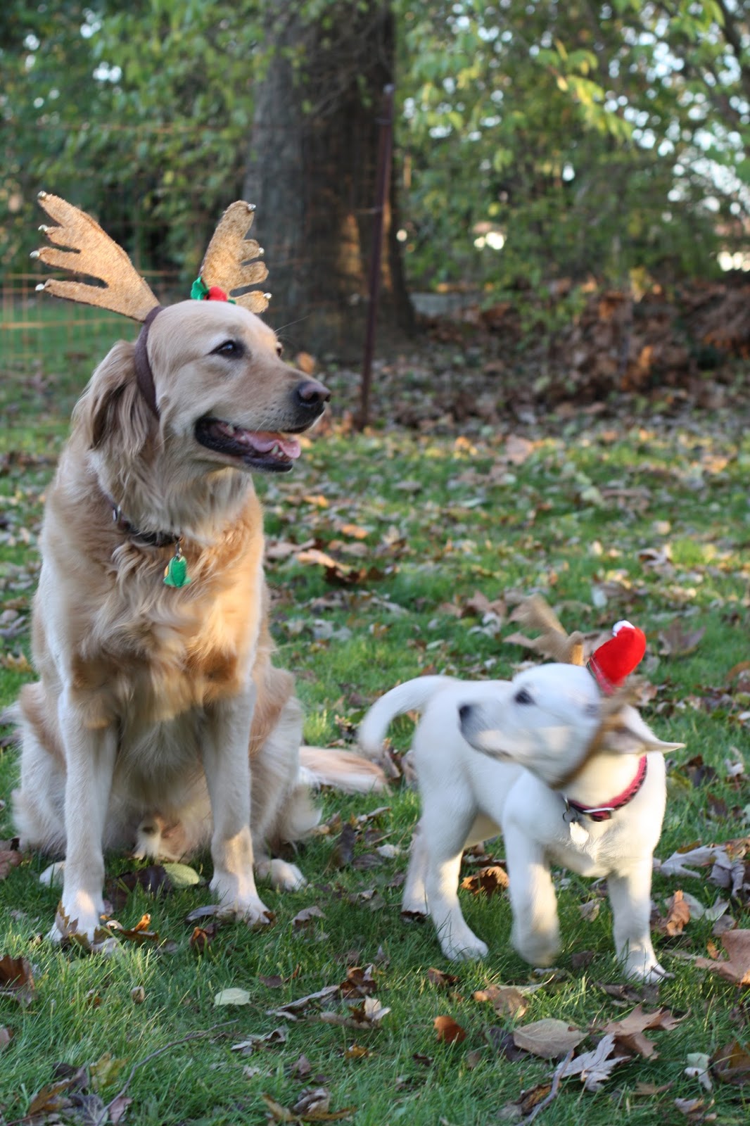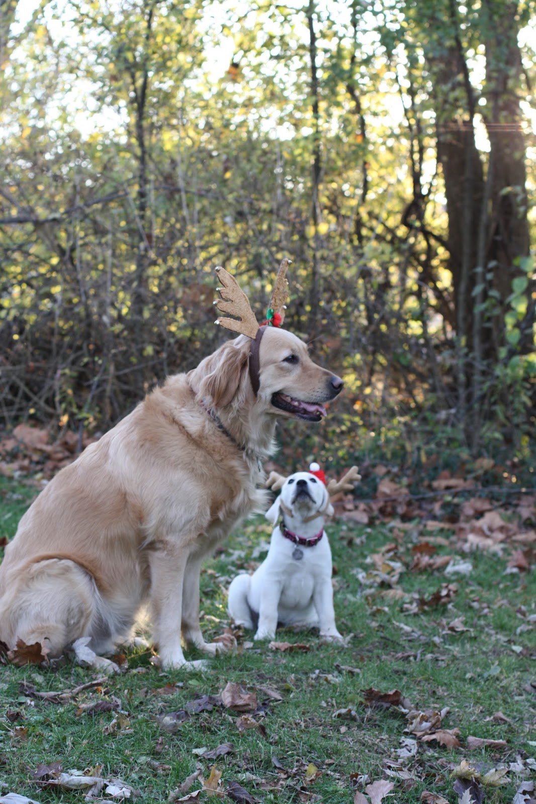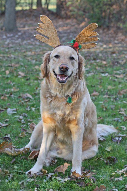Where does this persistent optimism come from anyway? It’s not like I’m bolstered by past successes. I’m not even an unnaturally upbeat kinda chick. Yet there we went into the backyard all confident – the pup, the big goober dog and me – accompanied by the Canon and two sets of reindeer antlers.