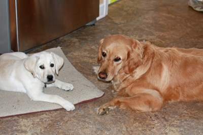 Micron, you are such a goober, I say. What I tell everyone is that Euka is doing just wonderful with her training and how she’s actually not eating shoes and staining the carpet. And then I say how well the two of you are getting along now. You’ve been so very sweet about sharing toys and playing chase in the backyard. I’m thinking that once this puppy chewing phase has passed, that the two of you will be pretty good pals.