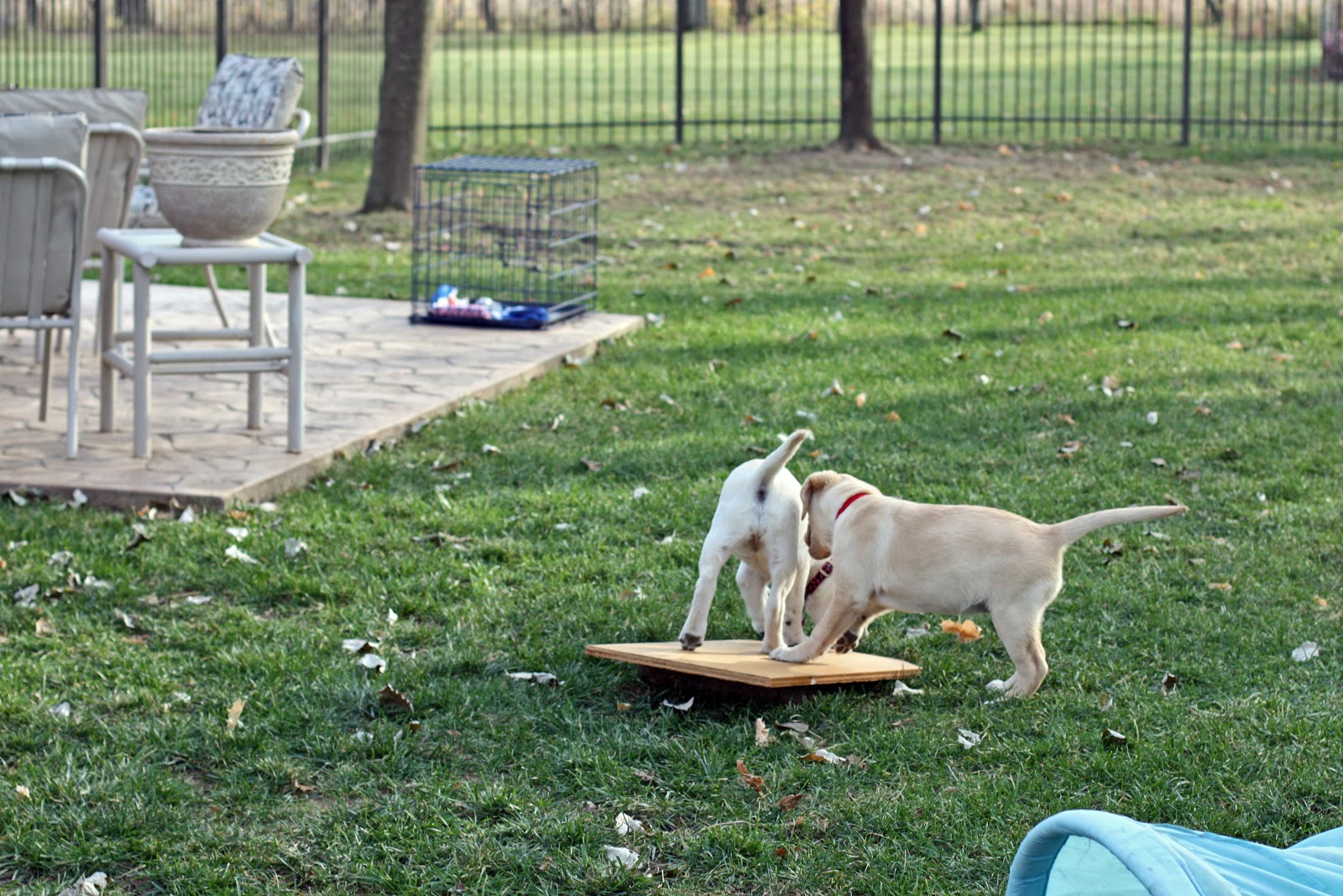 Many of the training stations are similar to the experiences the E’s had with their breeder caretaker and so won’t be the first time they seen such things. But repeated positive experiences as their growing puppy brains develop will help them as they continue to encounter the new and different that crosses their path.