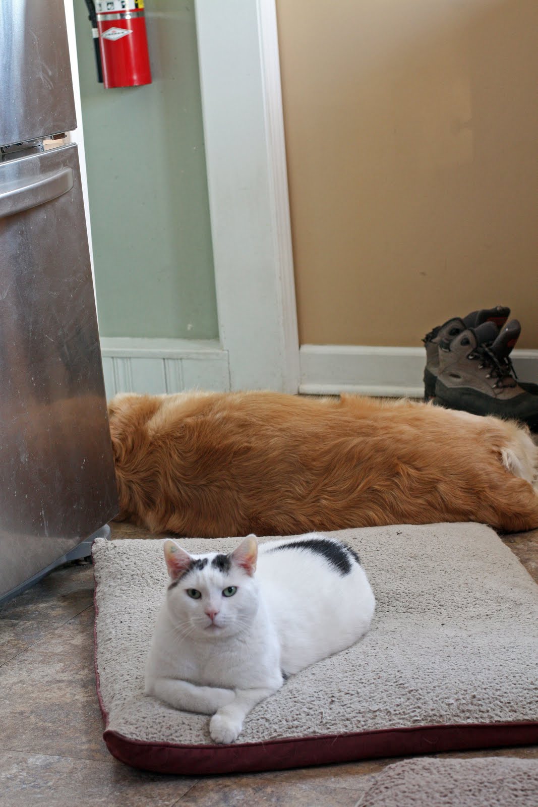 Bodine, benevolent ruler of Sword House, has commandeered the dog bed. A silent and bloodless takeover of prime real estate, which has left Micron to rest his weary bulk upon the kitchen tile.