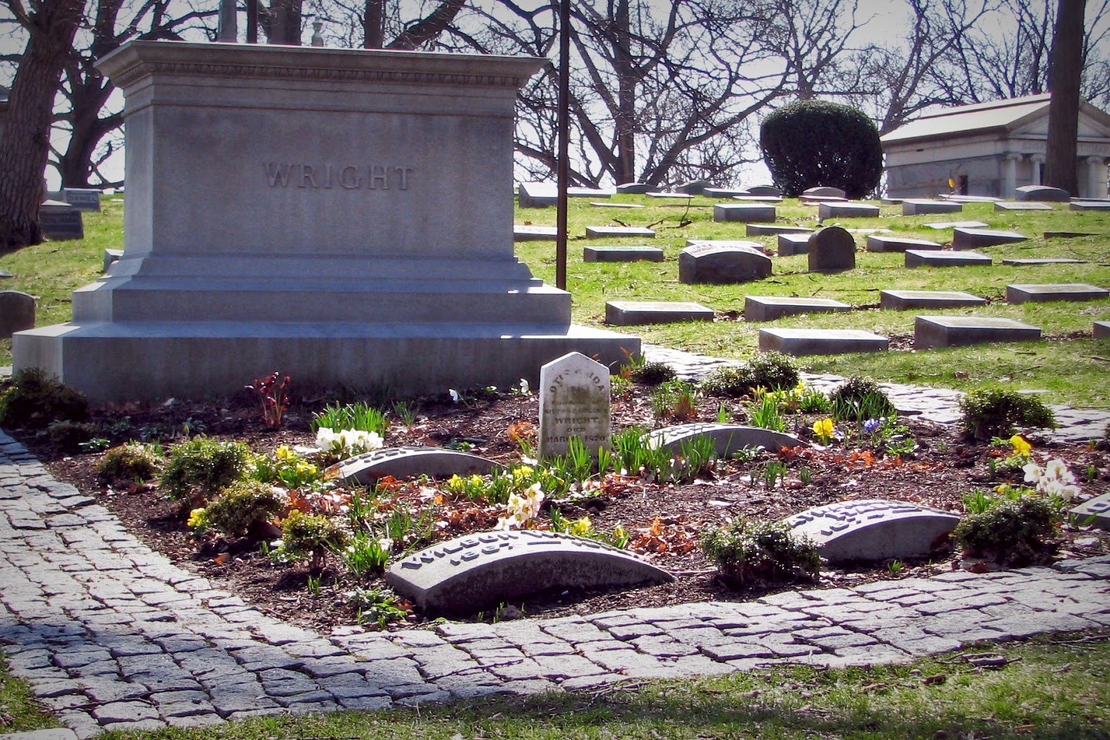 | And the Wright Family plot at Woodland Cemetery. It’s traditional to toss a penny on Wilbur and Orville’s markers when you visit. And by the way, these guys are buried in Dayton, the Birthplace of Aviation. |