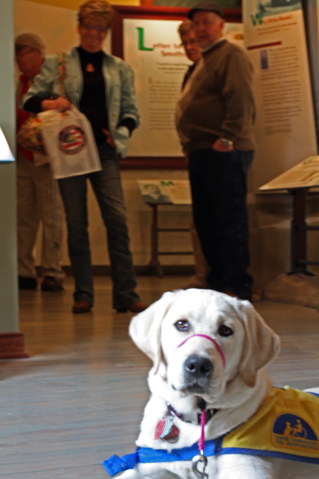 So how’d our girl do, you ask? Quite well, I think. At work we have some trouble with the happy Euka trying to jump on people. Usually the same people, so there’s a pattern there that makes it tougher to fix. At the Wright Brothers’ museum, her greetings were professional [whew]. Even with small children, she would hold a sit for a head pat when what she really wanted to do was sloppily lick their little faces. Good girl, good girl.