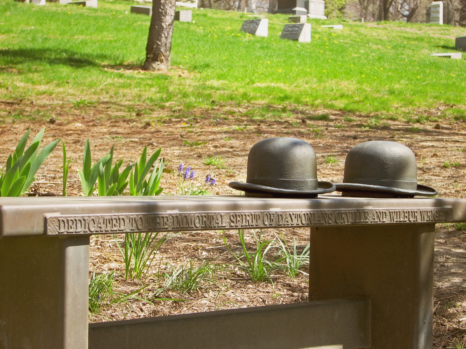 | A memorial bench to the Wright Brothers at Woodland Cemetery. In Dayton. |