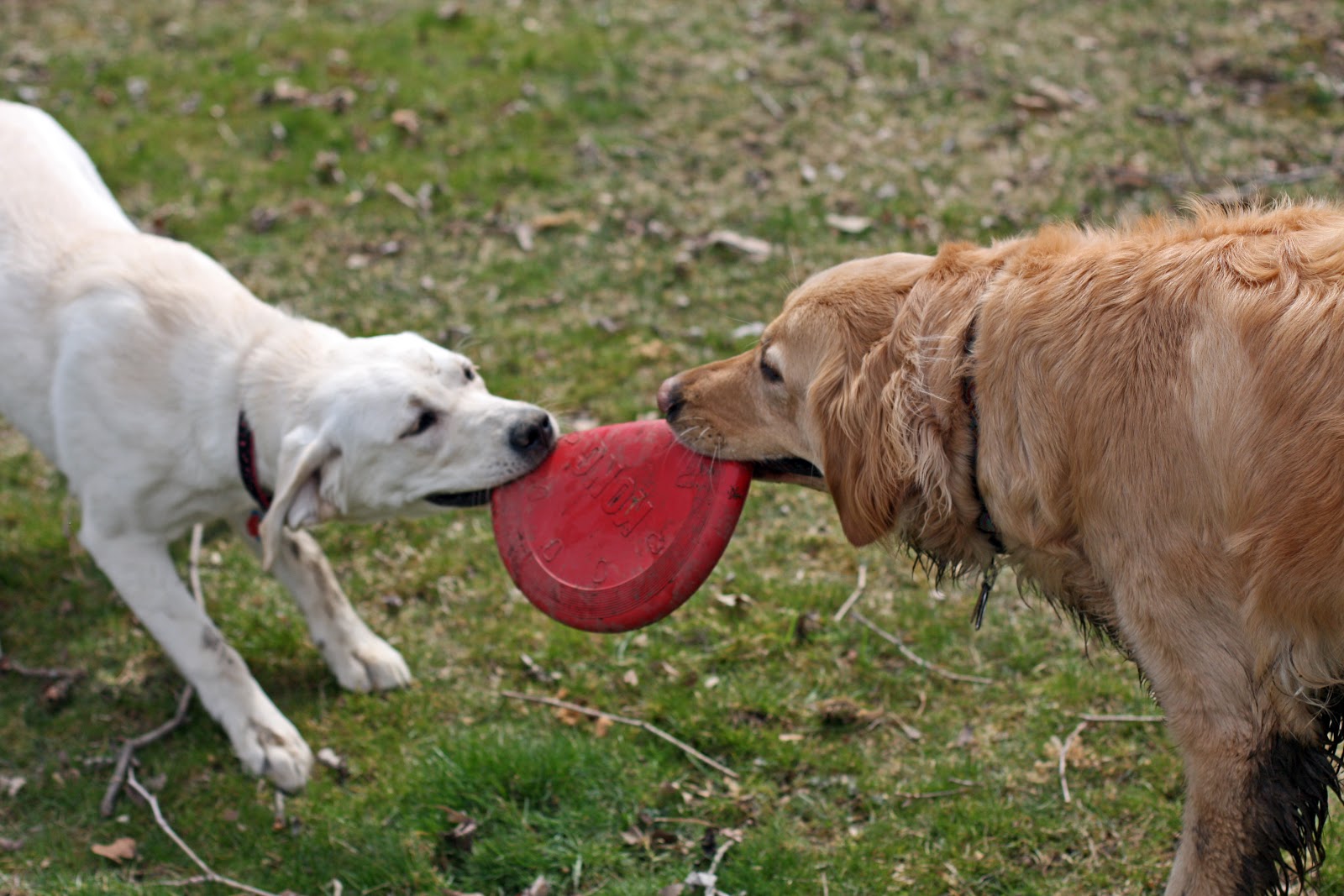 We’ll do this outside where the light is better. Euka can play with a frisbee while I spend some creative time with Micron. But I see a need to resolve a little problem first. The frisbee is fresh from the store and brand new, which makes it a High Value item. Both dogs want to play with the thing and have no intentions of sharing this OMG experience with each other. Ever. At least not today.