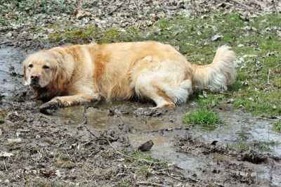 Oh he loves the mud. Sometimes I hate seeing my dog playing in the mud cos he hates the water sometime and I could not take seeing him very filthy all day.