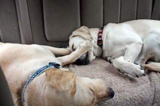 We get Emma and Euka to jump into the backseat of the car and prepare to head out. As I pull to the end of the driveway, I take a quick glance to make sure they’re behaving.