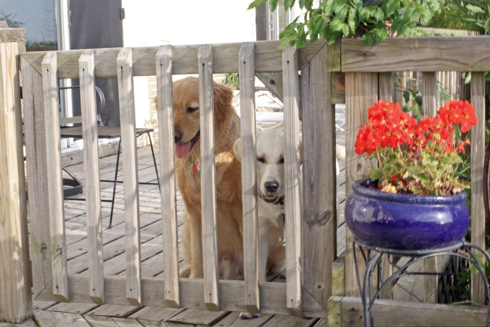 This place is just one wonderful surprise after another. The generous deck overlooks the bay, cool enough. But even better is that it’s gated so we can let the dogs roam and sun themselves without worrying about that random canine roaming that they are wont to do.