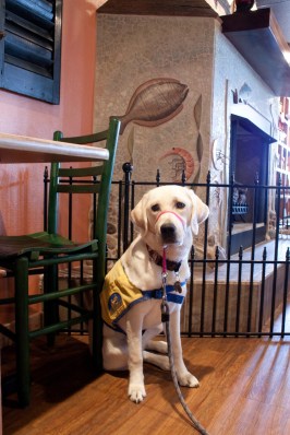 I’ve seen dogs raise their hackles and bark at a trash bag stuck to a chain link fence. And step back when encountering a helium-filled balloon floating at their eye level. There are some unnatural things that don’t make a clean process through a dog’s instinct driven noggin. A service pup in training needs some early exposure to help things along here.