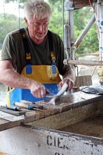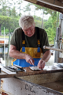 I’m not kidding when I say the next hour was one of the top highlights of our week on Cedar Island. We’ll set you up with a mess of fish and a load of bullshit today, says Aaron, Jr. as he entertains us with yet another story in that distinct Southern Outer Banks dialect. Which is different on every island down here, we’re told. The dialect, that is. Not sure about the bullshit, but it makes me happy believing that’s unique, too.