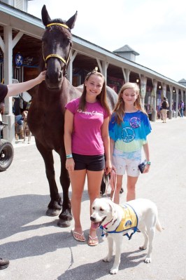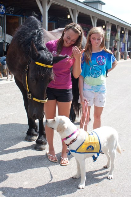 CCI pups are exempt from these rules, of course.* Despite what Euka thinks, she really doesn’t have a say in the decision. Her participation is mandatory, however I will leave it up to her on whether she enjoys the company of horses. Actually, I was pretty darn curious to see how she takes in these noble beasts. Could it be possible that our princess may get an equine assisted attitude adjustment?