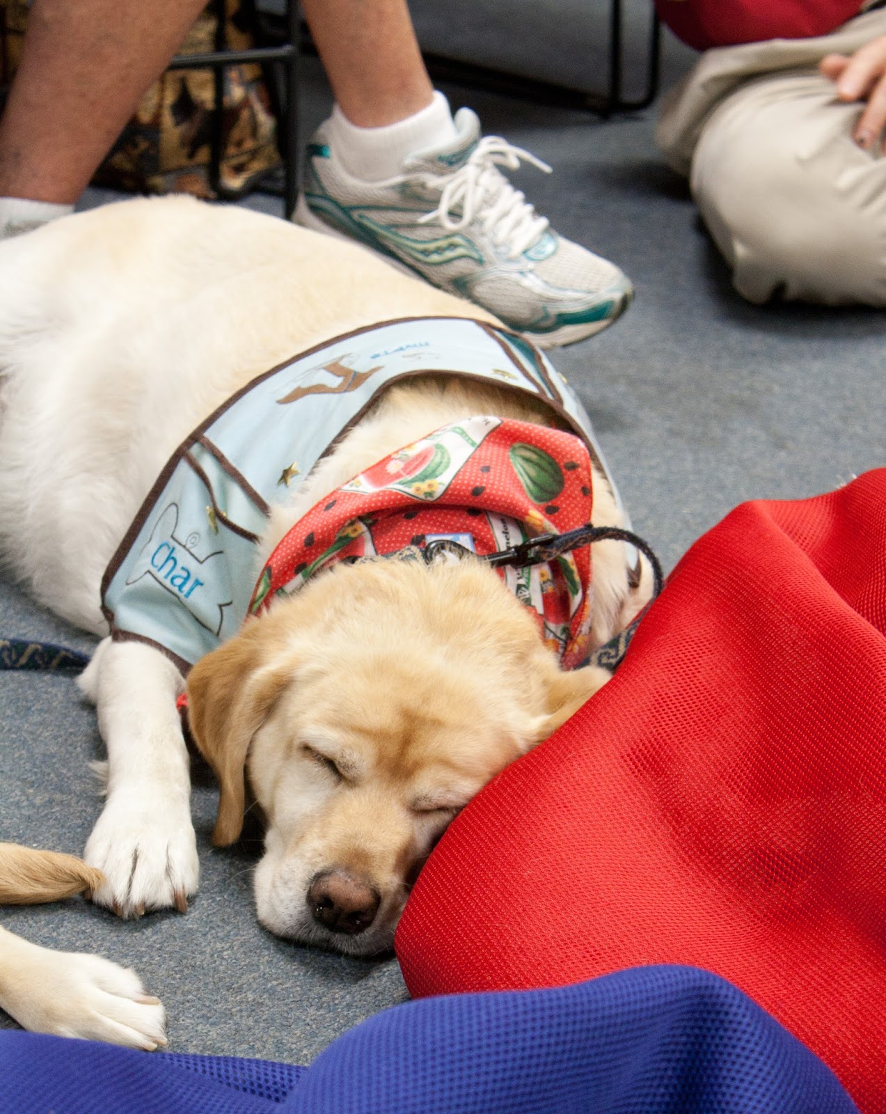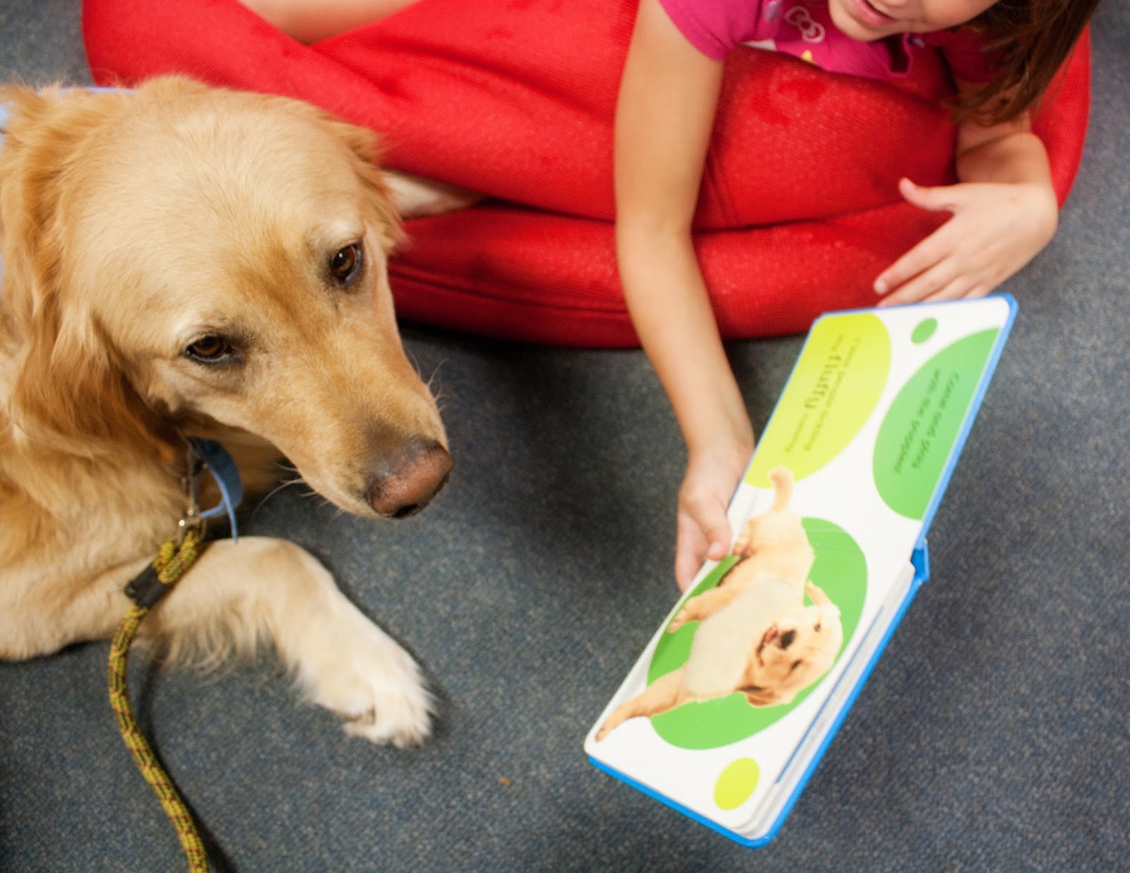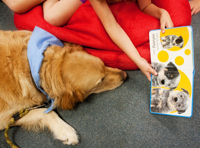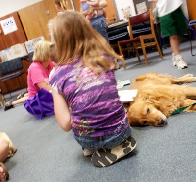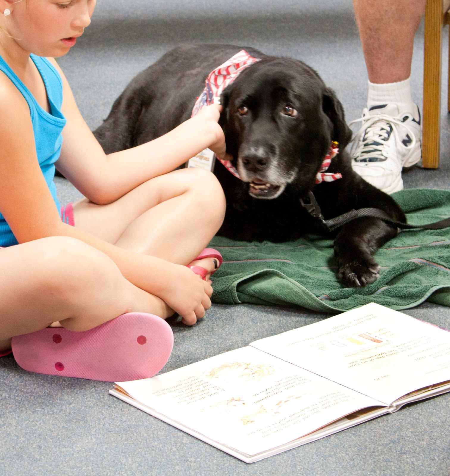 The Paws to Read library program is intended to encourage young readers to enjoy a good book among friendly canines. Unlike those of us who are rather judgmental about talking flies, these dogs really don’t have any concerns over plot lines or even individual reading styles of the narrators. It’s a comfortable, welcoming environment with all the happy hormones that pet therapy dogs bring with them when they enter a room.