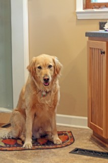 Sit, Leave it, turn around – we repeat the drill. And do do doo do . . . click click. What’s that now? Did I hear doggie toenails on the kitchen floor?  Naw, wonder dog is just shifting his weight, that’s all.  I glance at the timer and see that only thirty seconds have passed. And very slightly, very slowly I turn my head to make sure the treat’s still in place on the red plate.