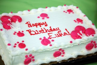 To celebrate Euka’s first birthday we held a party in her honor at the office this week. A combo affair, this. Micron’s fourth birthday is later this month. Sure ’nuff, we’re pet passionate folk here in the office and a dog’s birthday party is totally a socially acceptable kinda event.