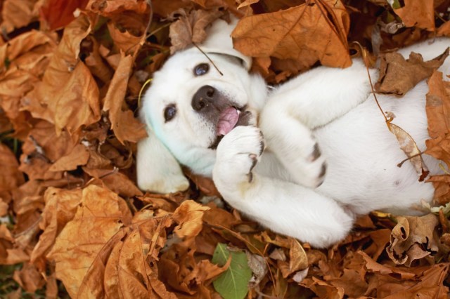 This was Miss Euka last year in her first Ohio leaf pile. Holy cow, is this stinkin’ adorable or what, people? It’s not like the eight week old pup had a kill switch for being ridiculously cute. This was On all the time.
