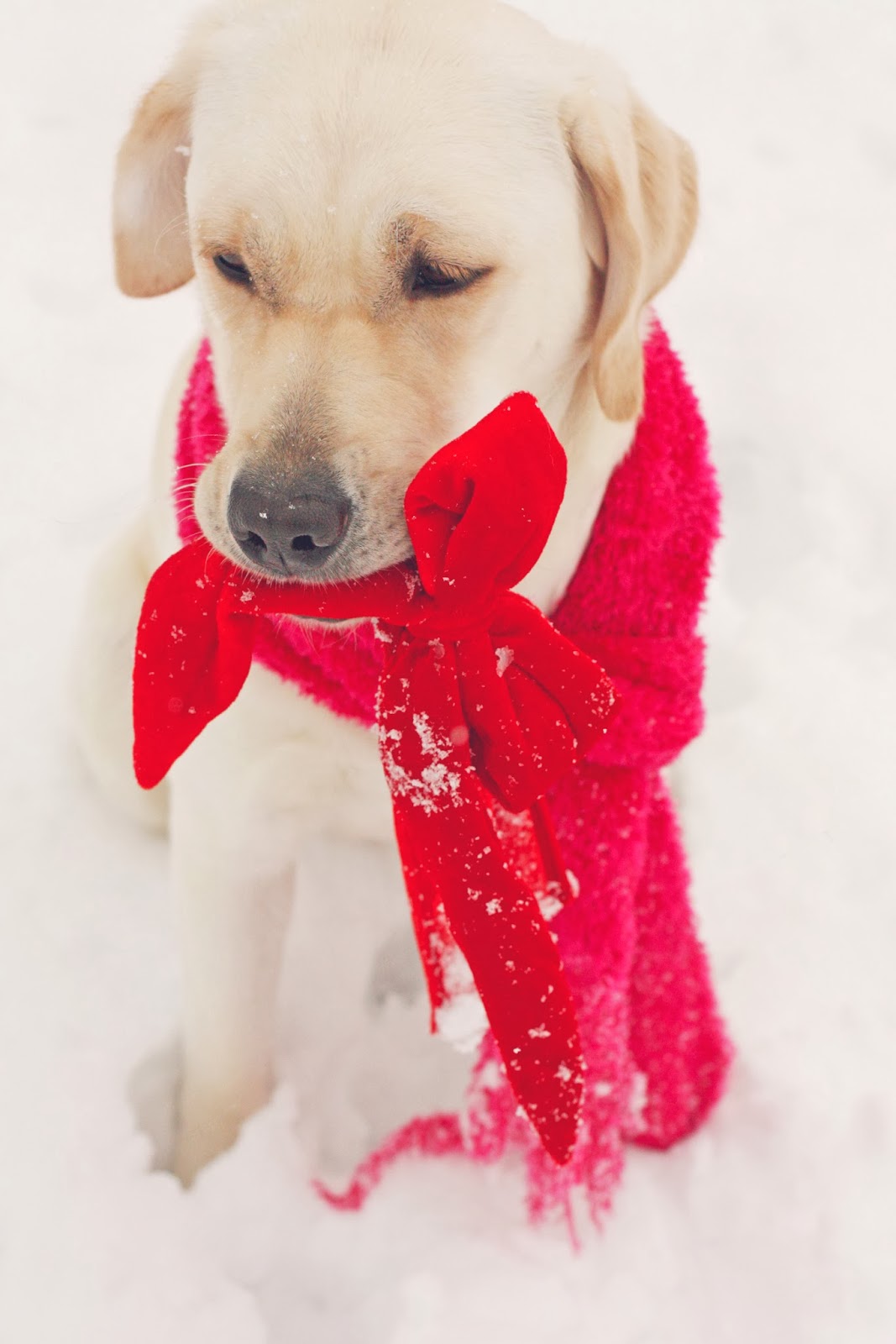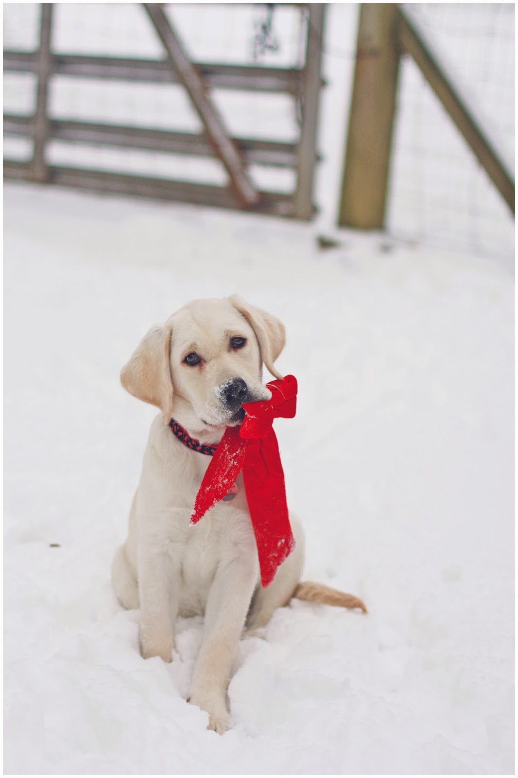 Just as gorgeous as she was last December, wouldn’t you agree? She would nearly blend into the snowscape like a winter fox if we didn’t have that red bow on her.