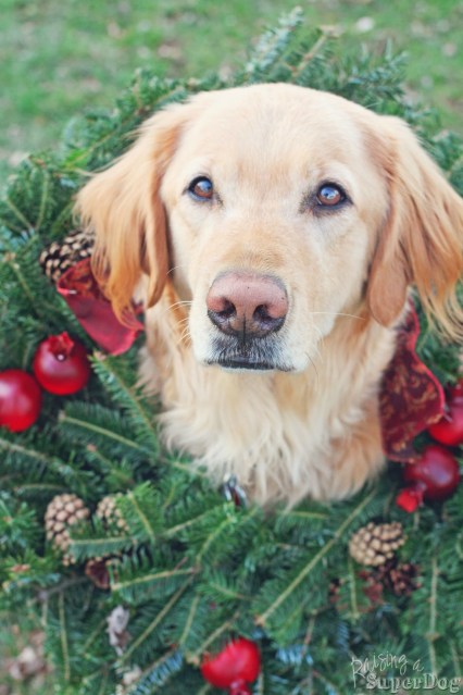 I admit with some self admonishment that I never thought about tossing a wreath about a dog’s wither regions as a photo prop. But once I saw Tippi’s holiday photo (a pup in training for Canine Companions for Independence), I was struck with inspiration.