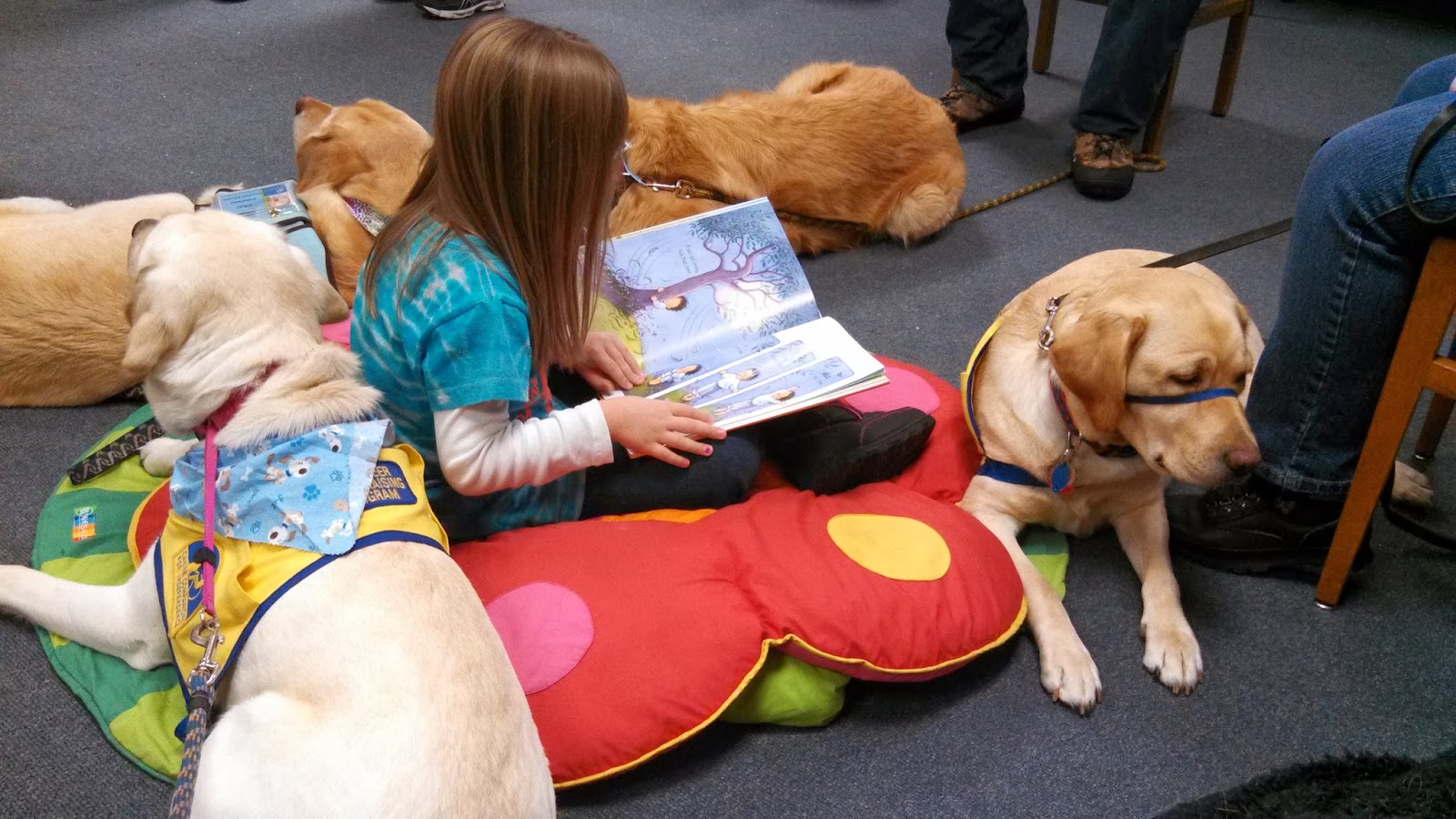 So after the other readers left, our four Paws to Read canine volunteers teamed up for a special private reading. We should all be so blessed, right?