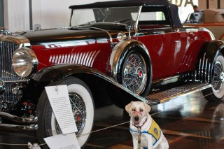 The bottom image with the fancy pants car was taken at the Auburn Cord Duesenberg Automobile Museum. Euka wanted to stand on the running board with a haughty look on her face. Your Toyota, she says to me, is so … you. This is how I should be traveling about, you know. We compromised with a pretty sit on the floor and a wan smile.