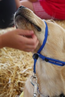 We do get the comments on the head halter, that handy training tool. And honestly, I don’t mind fielding the questions. It’s much better to have an educational moment than the sly skunk eye we get from those who aren’t familiar. I suspect the muzzle comment is a common theme among volunteer puppy raisers for Canine Companions for Independence.
