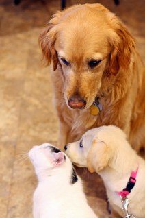 We met Holly, and her litter mates Hoagy and Harvest, after their flight into Dayton from sunny California this past Wednesday. Hail and hearty, the lot of ’em, but happy to be out of their crates and to have a chance to run about for a few minutes.