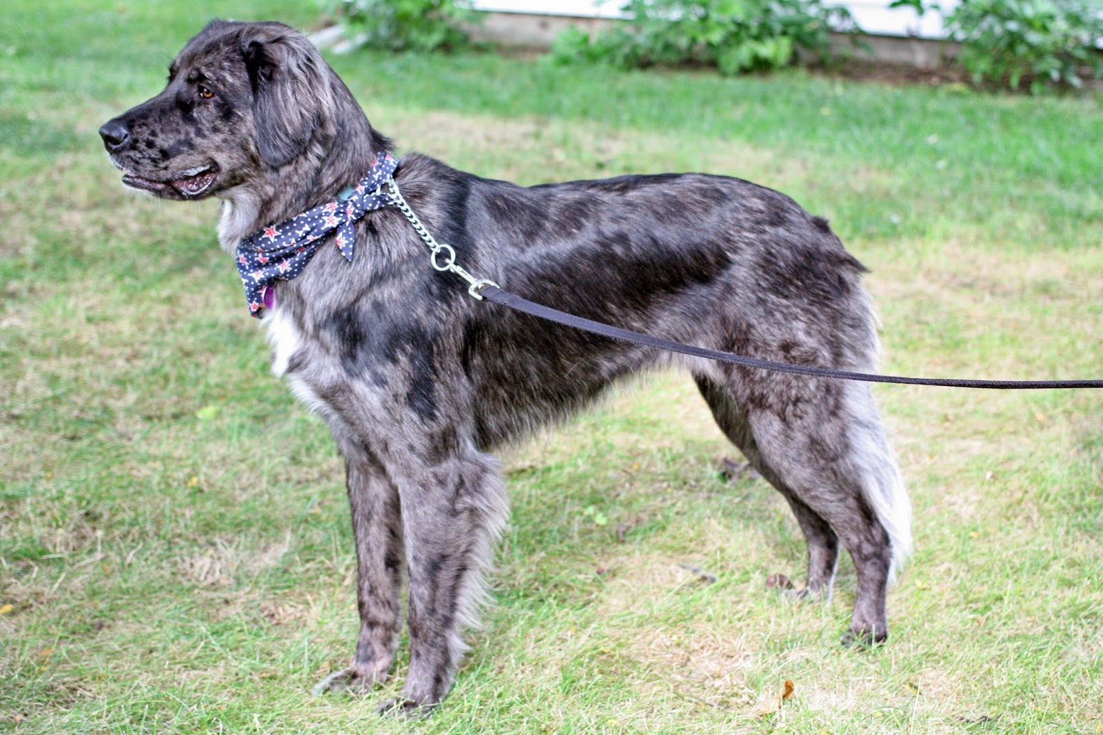 Dark and freckled and wagging a plume to rival Micron’s own Tail of Wondrous Beauty, Elsa is a mixed breed of what appears to be a sporting dog heritage.