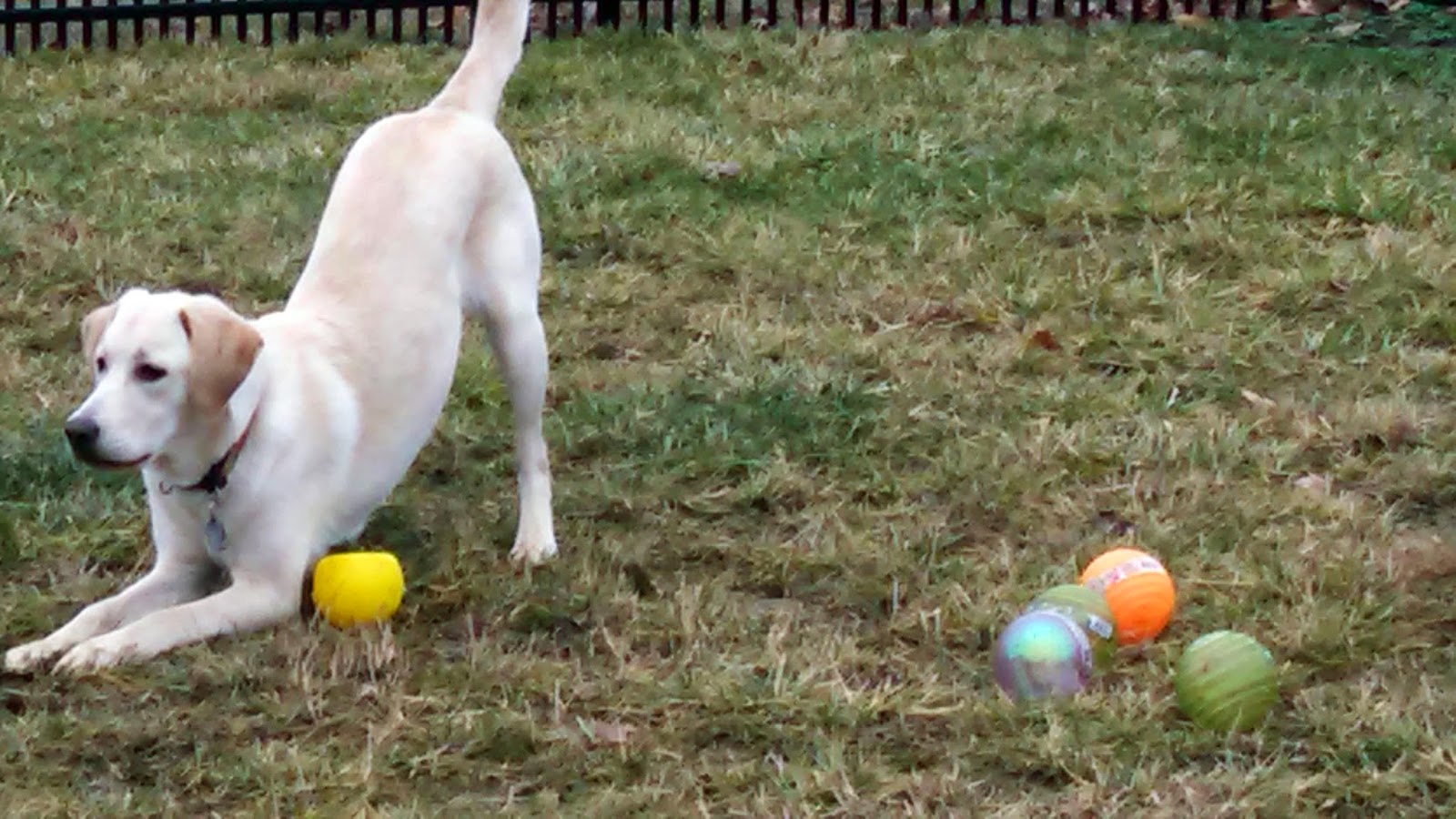 It’s not reasonable to expect this young thing to enjoy the same sedimentary pastimes as someone of my ilk. Which means mostly avoiding situations where I’d have to run, jog or any other event where I would have fewer than one foot on the ground. Thank the Lord for tennis balls.